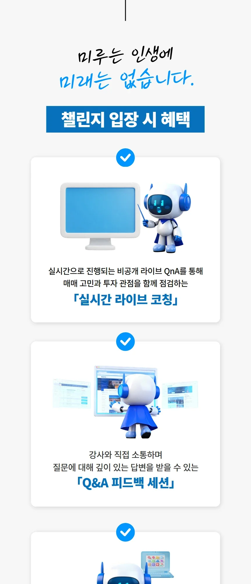 새로운 세상을 알게 되었습니다. 그들이 사는 세상이 여기에도 있었더군요. 30일의 챌린지를 열심히 따라가면서 조금씩 눈과 귀에 들어오는 것이 달라졌습니다. 아직은 많이 부족하고 자신 없지만 강의도 반복하고 우등생 방도 따라가면서 꿈을 이루어 보겠습니다. 좋은 강의 감사합니다.