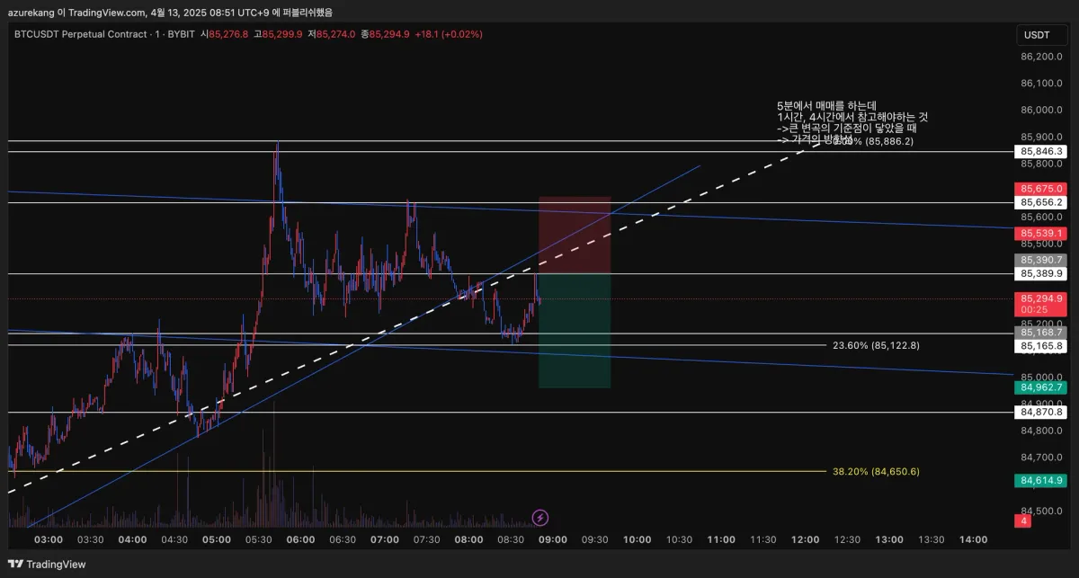 • SP : 85,675 → 1시간 봉 2차 고점 85,656 보다 조금 위