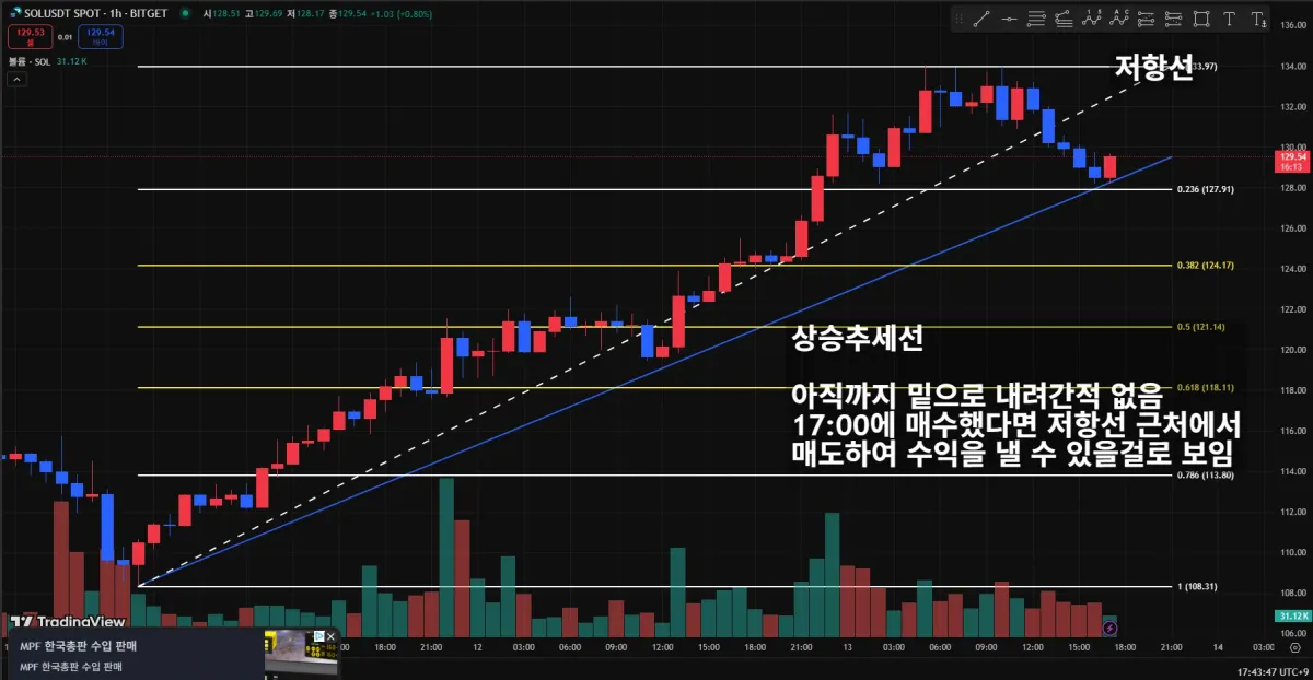 솔라나 코인 차트 보고 한번 더 배운 것 적용하여 보았습니다