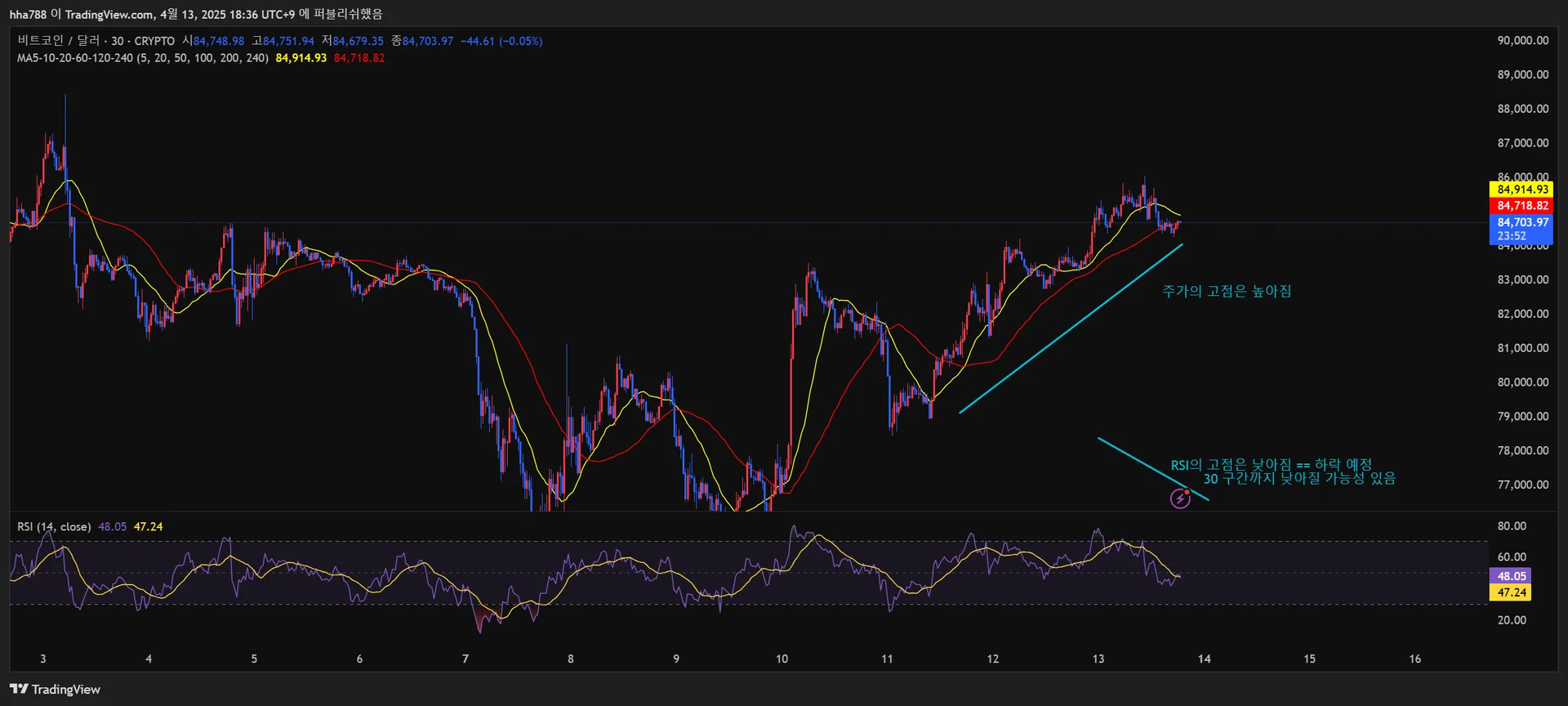 캔들과 이평선 20- 50 사용 & RSI 사용