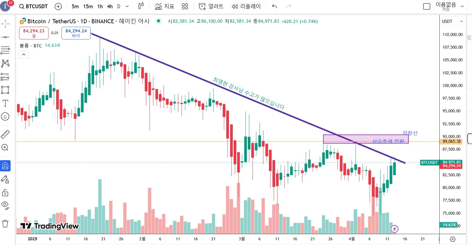 트레이딩뷰 기능은 저장해놓고 여러번 봐야지만 익숙해질거 같습니다 ㅠㅠ