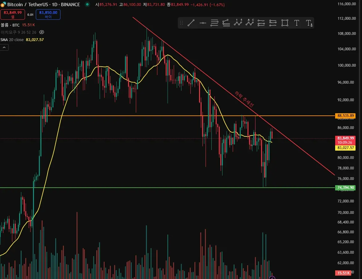 지지저항 및 추세선 강의를 듣고 작도해 보았습니다.