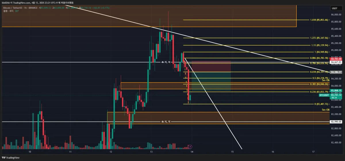 84,700 4h 저항선 위 고점