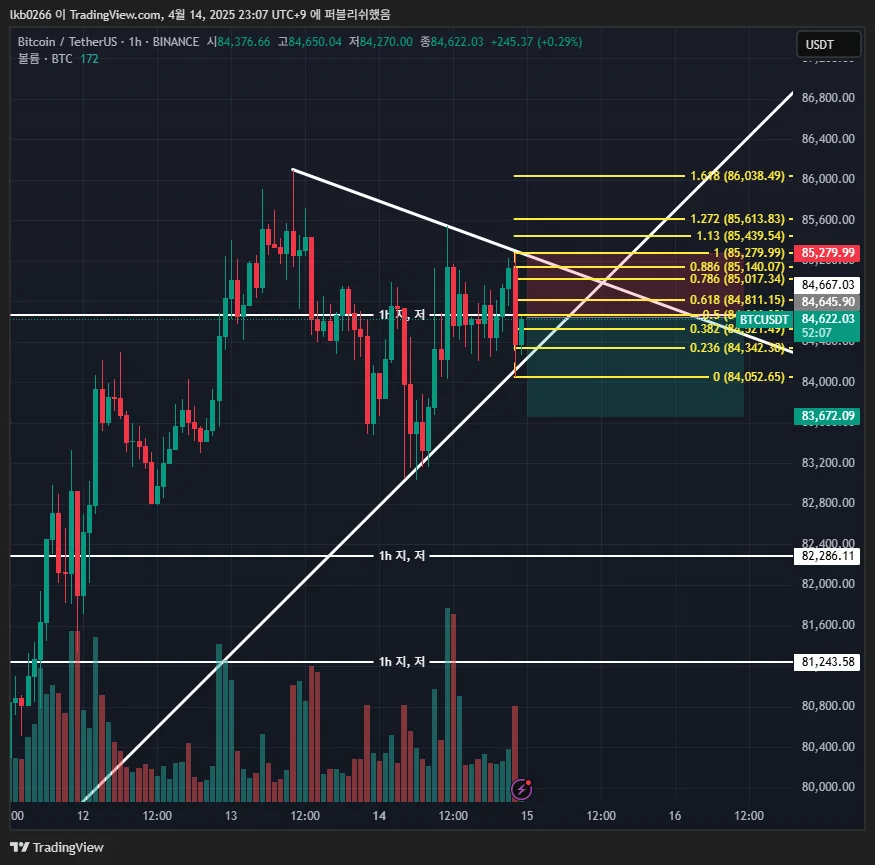 1차 : 84,550 1h지, 저와 피보나치 0.5 겹침