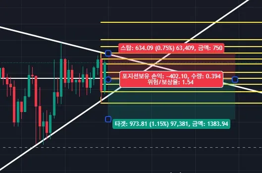 복기: 지지, 저항선을 올라가거나, 추세선을 깨고 올라가서 피보나치 1.13 가기 전에 떨어질 것 같다고 생각을 했었는데 되돌림을 주고 있는 자리에서 피보나치를 찍는게 아니라 그 전의 고점과 저점을 찍어야겠다고 생각했습니다.