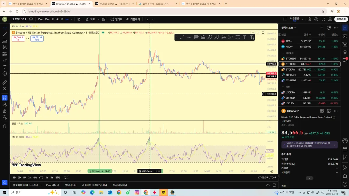 1분동 기준 rsi70 돌파에서 내려오는 구간을 작도해봤을 때 타점들이 눈에 보이기 시작합니다 감사합니다..!!