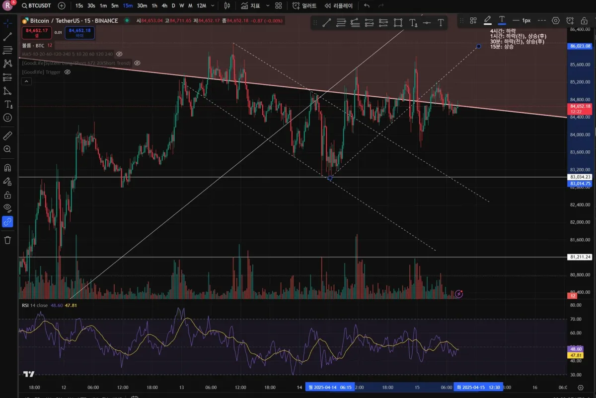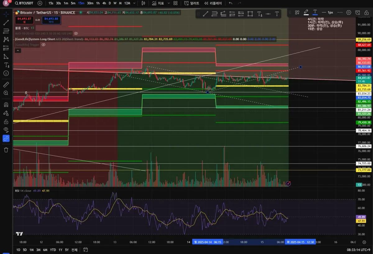 특히 15분봉에서 굿라이프 트리거를 쓰면 화면이 이렇게 되요. ㅠㅠ 이거 에러나는걸까요?
