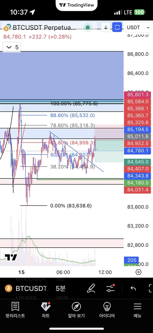 이를 근거로 오더블럭 상방 돌파시 손절할 것으로 보고있고, 85000 터치 후 가격거부반응을 보고, 숏 진입하였습니다.