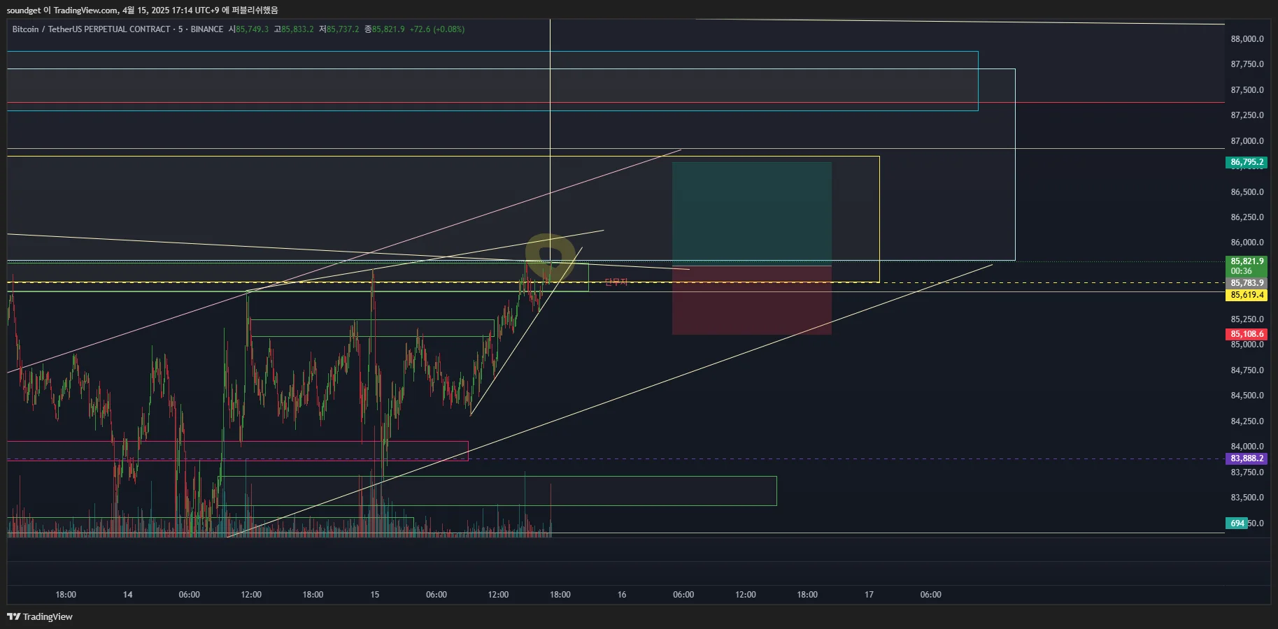 진입:85783.9/스탑:85319.1/익절:86482.8/손익비 1:1.5-> 진입 스탑가를 수정함 수익구간을 1%미만으로 조정