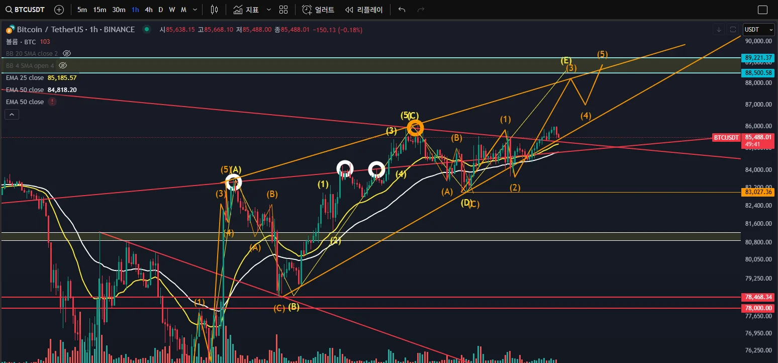 시나리오대로 88~88.5k 터치후 흐름보고 포지션변경 대응할까합니다.