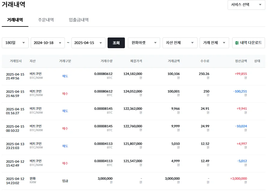 수수료 때문에 손해가 되는군요. 5분봉으로 혹은 1분봉으로 어느정도 변동폭을 극복해야 하는지 아직은 잘 모르겠습니다.
