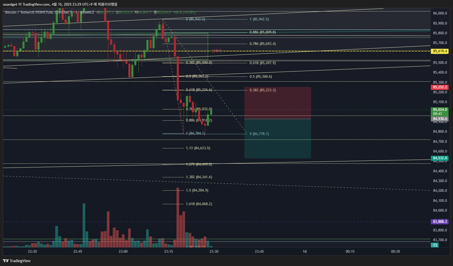 진입:84930.6/스탑:85252.2/익절:84532.0/손익비 1:1.24