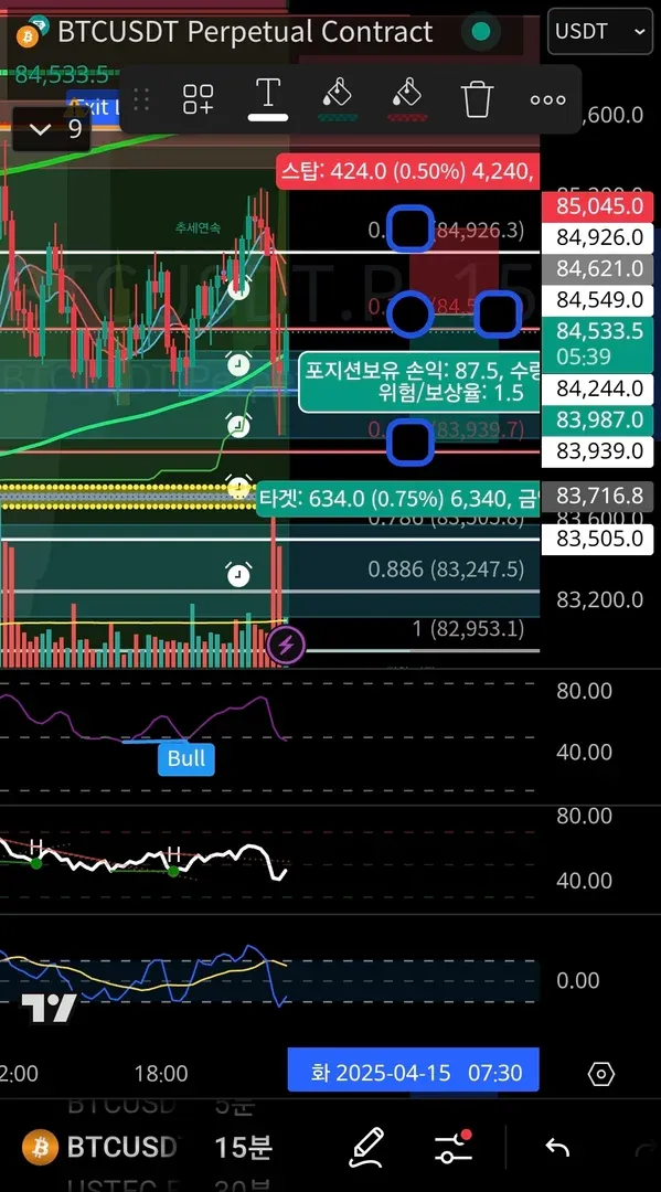 - 손익비 1:1.5 구간, 피보나치 0.618 약간 위