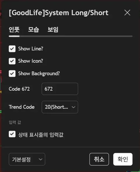 지금 사용 중이신 것은 커스텀으로 만든 [GoodLife]System Long/Short 지표로 보이고, 각 요소에 대해 수치를 조절할 수 있도록 되어 있습니다. 문제는 이 설정값들이 특정 시간봉에서 기준으로 만들어졌기 때문에, 다른 시간봉으로 전환했을 때 구조가 왜곡되거나 차트 상에서 맞지 않는 결과가 나올 수 있다는 점입니다. 예를 들어 4시간봉 기준으로 설계된 지표라면, 4시간봉에서는 신호가 명확하게 나올 수 있지만 1시간봉이나 15분봉 등으로 바꾸면 같은 수치를 사용하더라도 이동평균선의 밀도나 캔들의 패턴 자체가 달라지므로 결과도 당연히 달라지게 됩니다. 그래서 이런 시스템 지표를 사용할 땐 처음 기준이 된 시간봉을 기준으로만 해석하고, 다른 시간봉에서도 사용하고 싶다면 그 시간봉에 맞게 다시 세팅값을 조정해줘야 합니다. 일반적으로는 시간 단위를 반으로 줄이거나 늘릴 때 각 지표의 기간도 비례해서 조절하는 식으로 맞춰보는 방식으로 접근합니다. 다만 정확한 방식은 지표 개발자가 어떤 기준으로 설계했는지에 따라 달라지기 때문에 직접 테스트하고 눈으로 결과를 검증하는 수밖에 없습니다. 타임프레임 설정에 관해서는, 차트 상단에서 1분, 5분, 15분, 1시간, 4시간, 일봉 등의 버튼을 눌러 원하는 시간봉을 설정하실 수 있고, 각 시간봉에서 지표가 어떤 식으로 반응하는지를 꼭 직접 확인해보셔야 합니다. 결론적으로, 지금 보여주신 지표 세팅이 ‘맞다 틀리다’의 문제보다는, 해당 시간봉에 적합하게 설계된 값인지와 실제 차트에서 그 구조가 잘 보이고 일관된 흐름을 잡아주는지를 기준으로 판단하셔야 합니다.