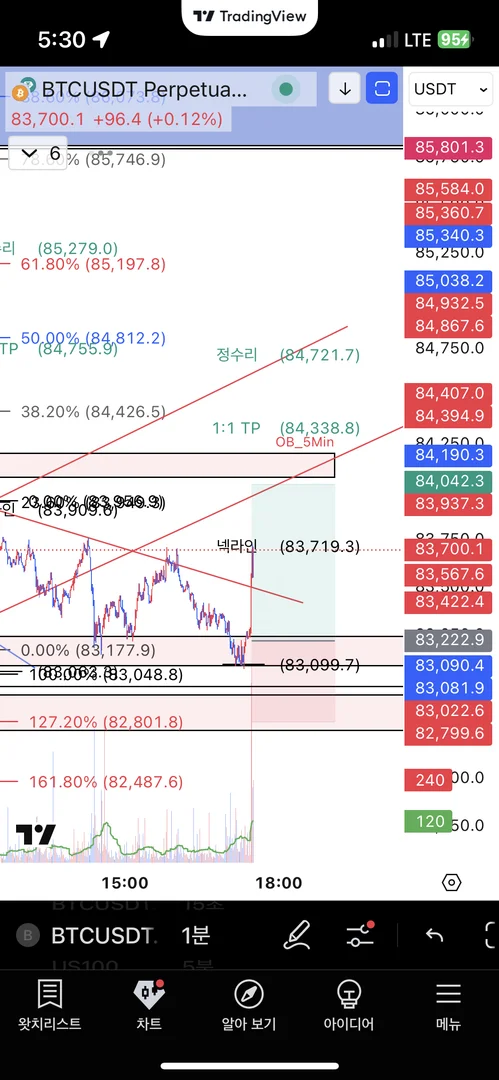 TP : 단기더블바텀으로 보고 TP는 84300 부근인데 손익비가 2 넘어서 캔들 보고 판단하도록 하겠습니다.