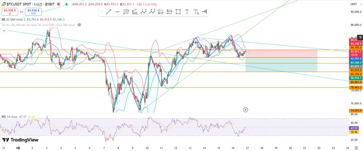 손절가를 84200으로 세팅 하고 1차 익절을 83167로 세팅했지만