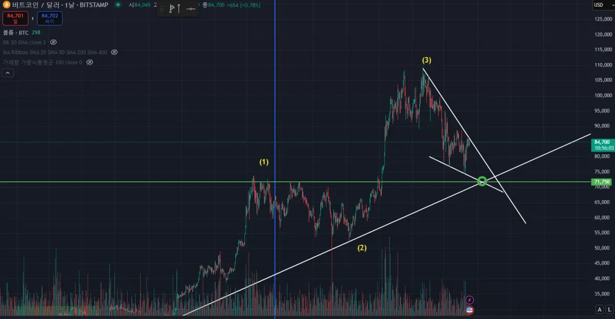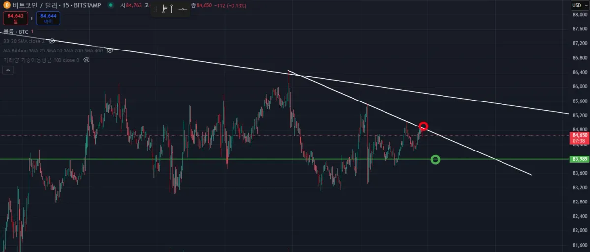 23년 10월에 시작한 상승 추세가 아직 깨지지 않았음. 이 추세선이 깨진다면 공포 국면으로 전환될 것으로 예상됨.