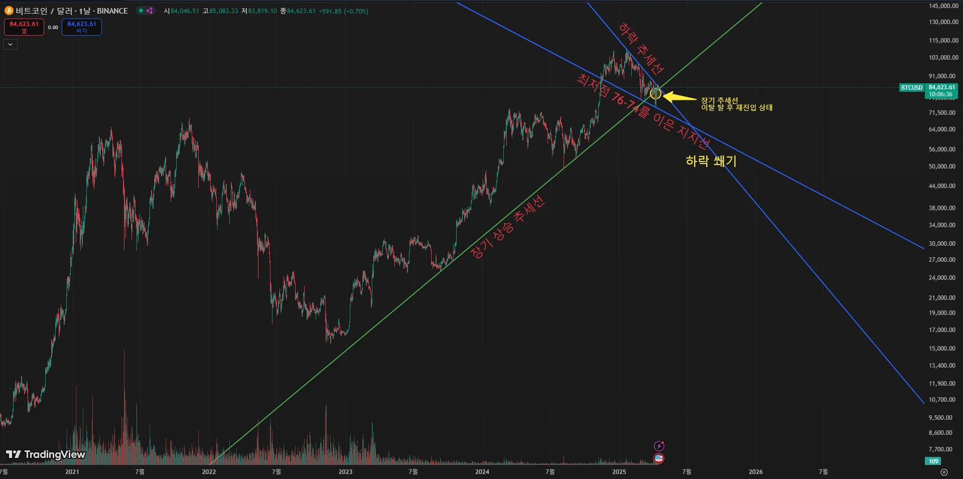 만약 하락 추세선을 맞고 급격한 하락이 있으면 하락 쐐기형을 폐기하고 빠르게 공매도 포지션으로 추격 진입 할 예정입니다.