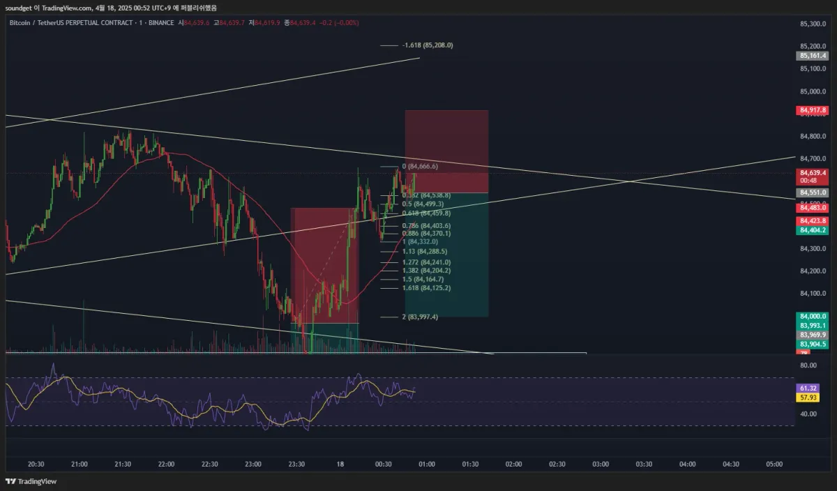 진입:84551.0/스탑:84917.8/익절:84000.0/손익비 1:1.5