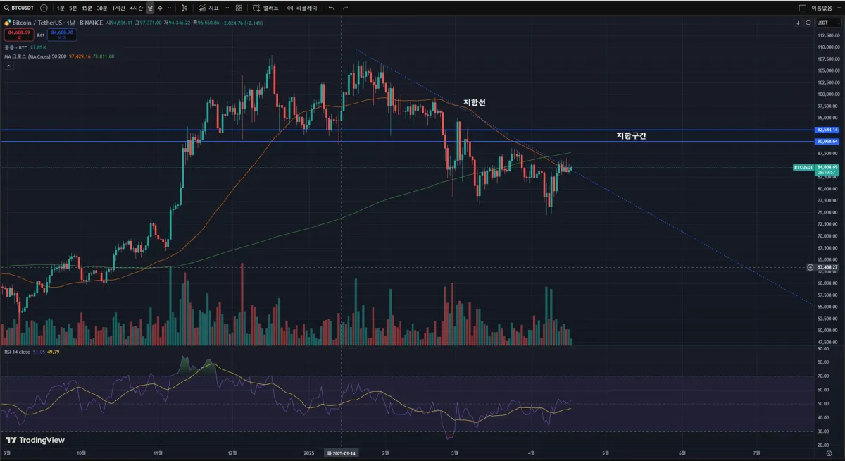 저항선뚫고 저항구간을 돌파 마감하지않는이상 계속 하락세는 지속되지않을까 싶습니다