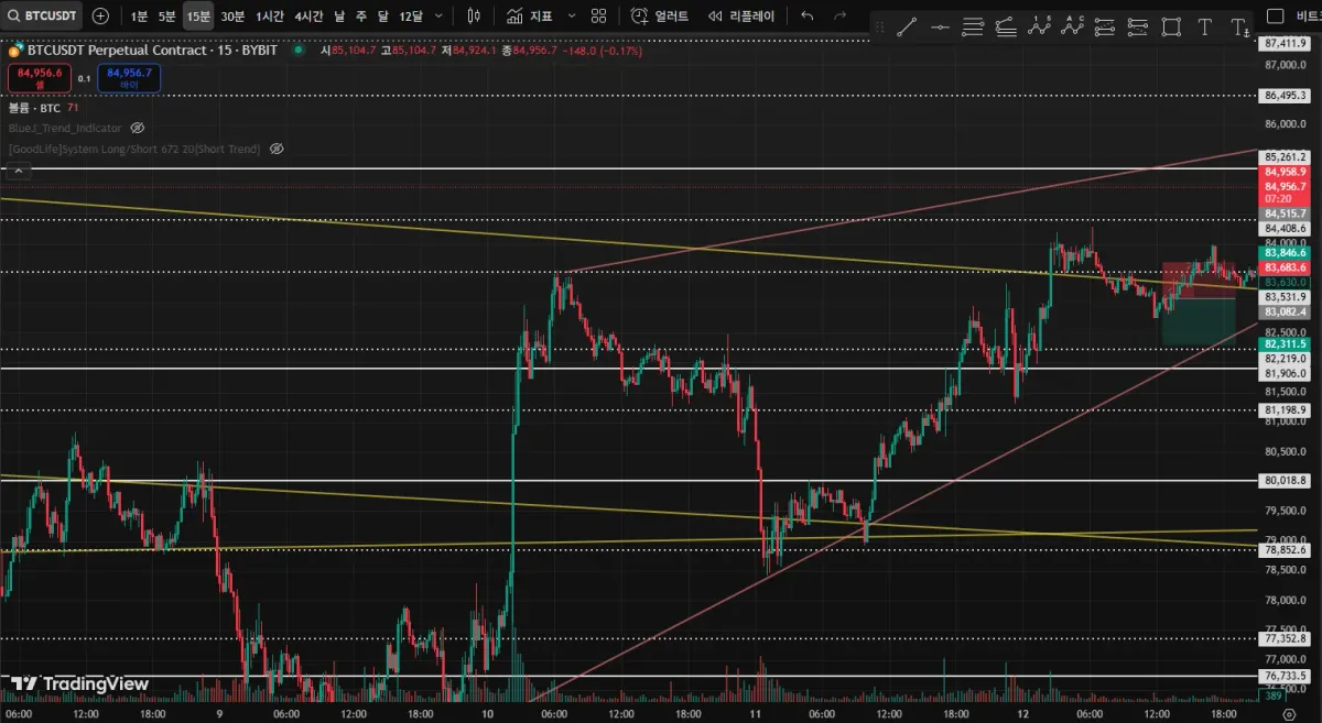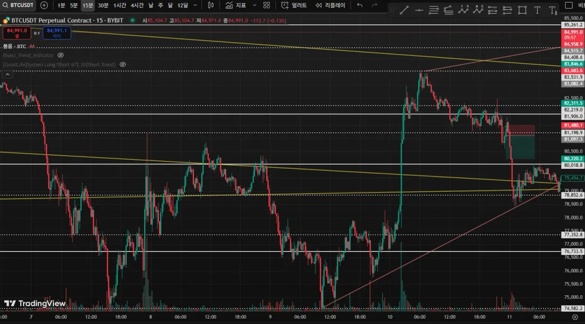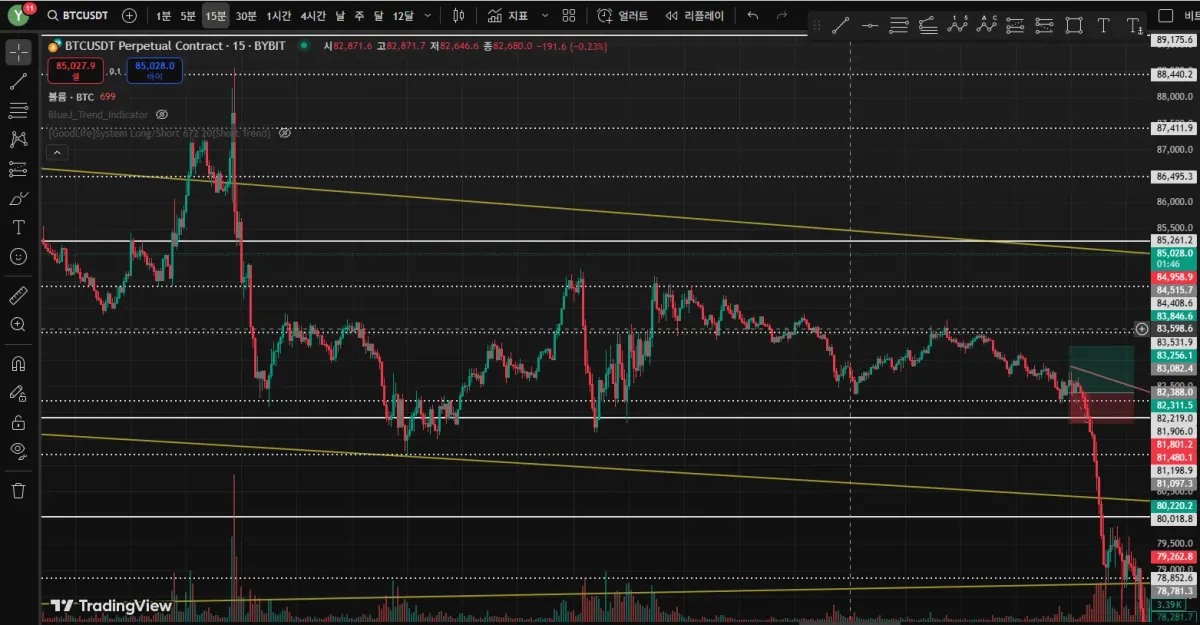 - 단기 변동성이 크게 확인되어 15분 2개 봉만에 손절나고 다시 제자리로 회귀
