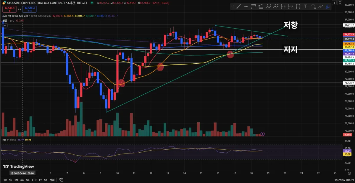 RSI는 50부근으로 과매수 과매도 둘 다 아닌 상황입니다.