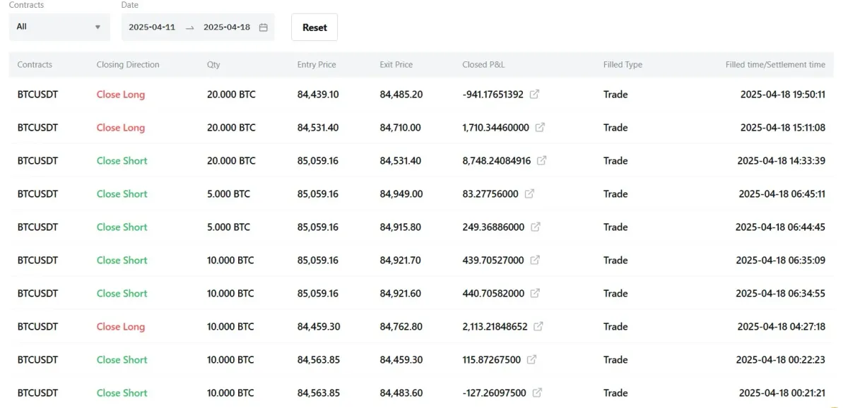 [30일 챌린지 21기 4주차] 바이빗 데모트레이딩 매매내역입니다