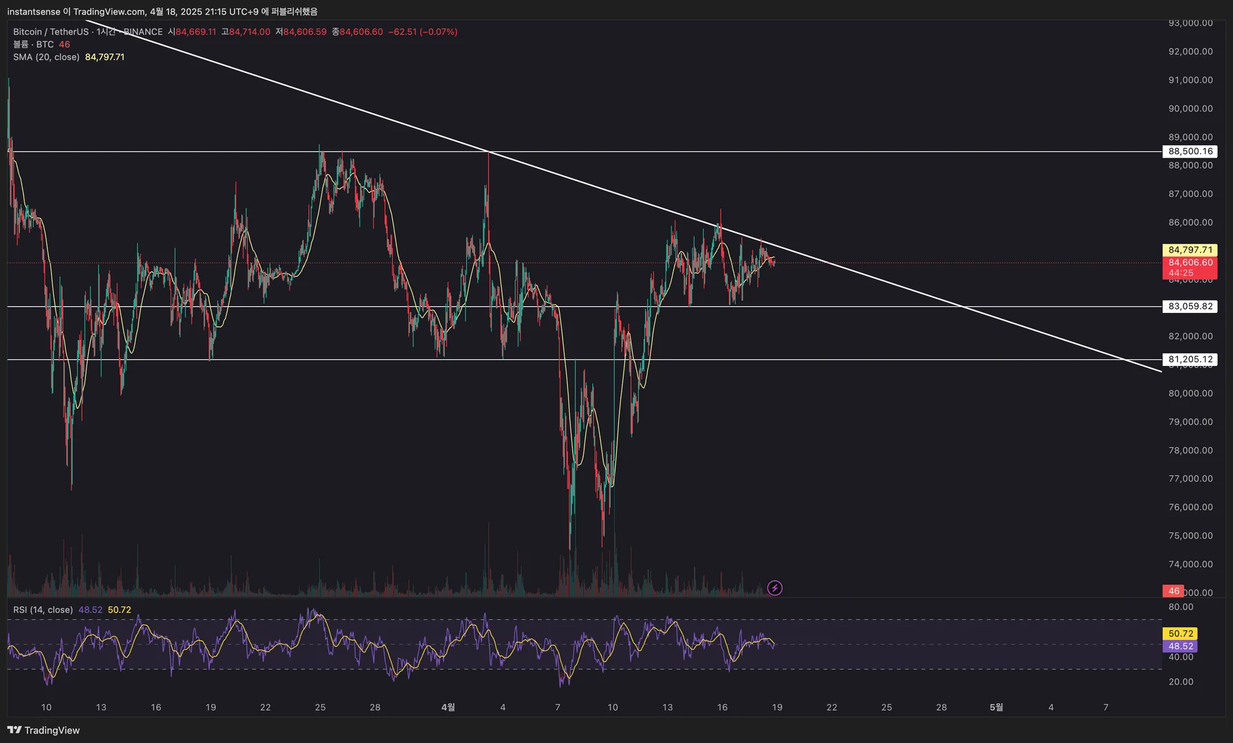1시간 봉 기준으로 유의미해 보이는 지지저항선을 3개 그렸고,