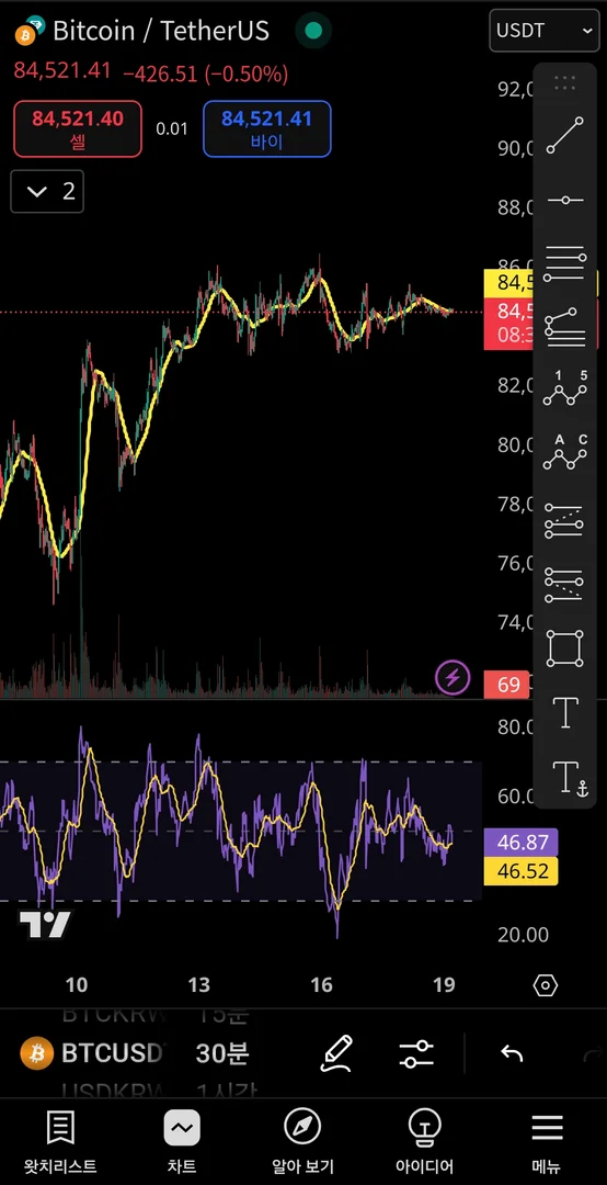 차트에 거래량과 RSI지표 추가 캡쳐사진입니다