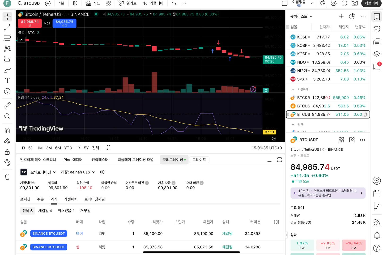 매번 세팅해놓은 컴퓨터로 하다가 아이패드로 하다보니 색상이 헷갈려서 매수 매도를 반대로 했습니다..