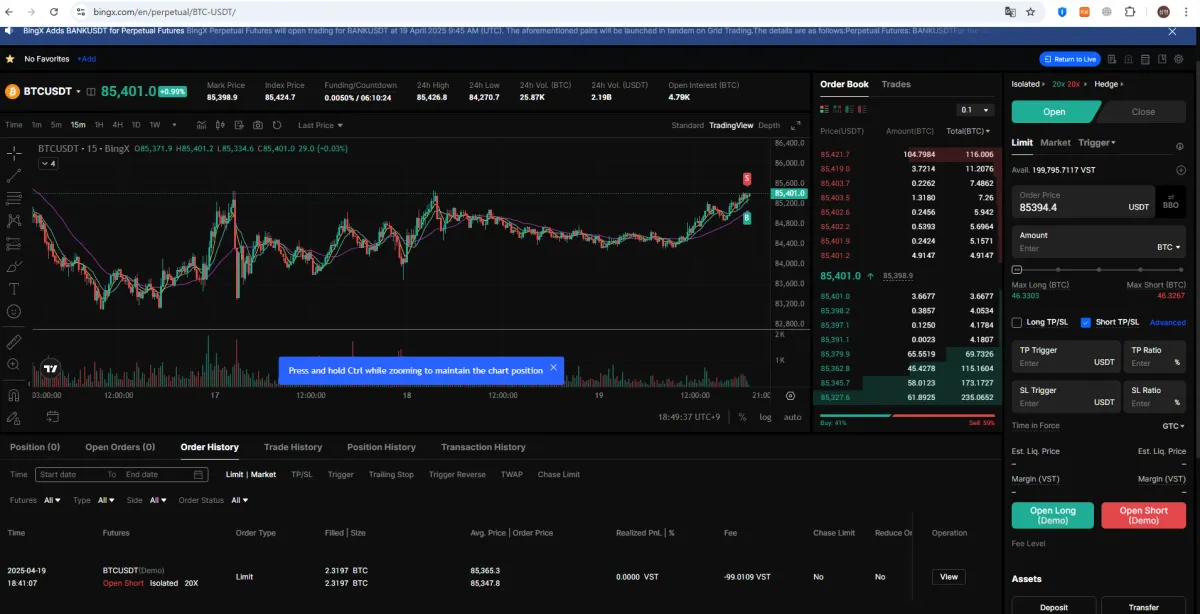 지지선을 찍고 나면 하락할 걸로 보고 숏 포지션으로 진입을 하였지만
