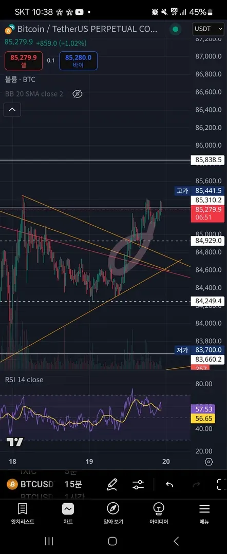 추세선을 넘고 저항선도 넘어서 리테스트하러 올 때 진입해보았습니다