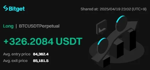 84400부근에 단기 지지확인 후 진입하였습니다