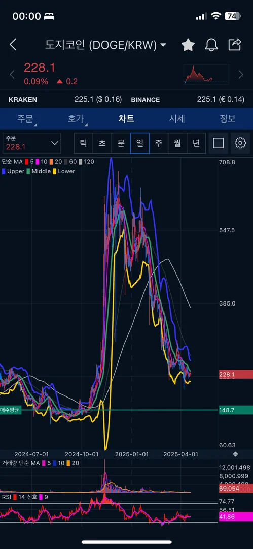 현재 하락추세인것은 파악하고 있으나 정확히 어떤 패턴인지 뚜렷하게 보여지는게 없어서 익절라인을 잡기가 어려운 상황인데