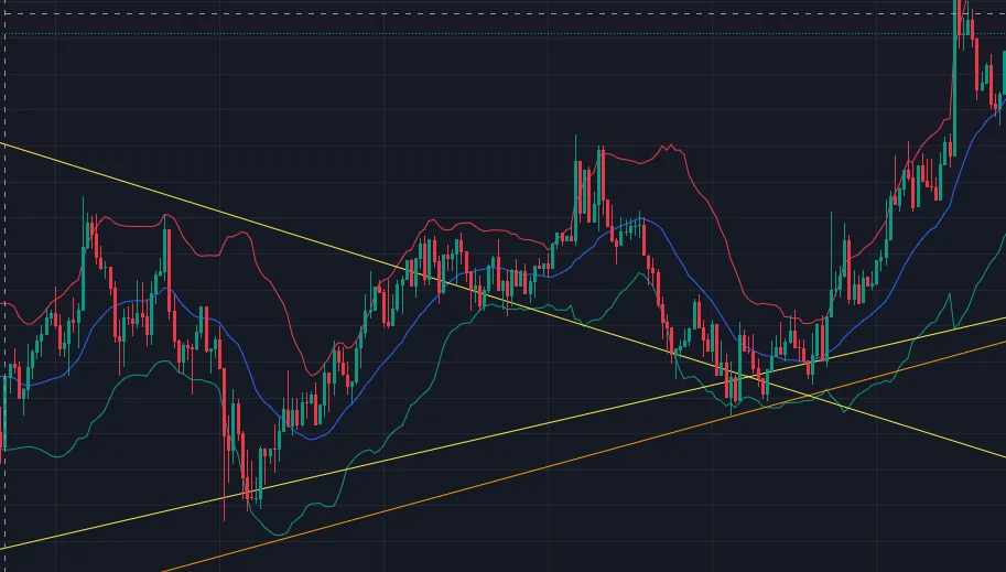 저항선을 뚫고 올라갈줄 알았지만 저항선 리테스트 + 아래 지지선까지 확인하고 후에 올라간 모습.