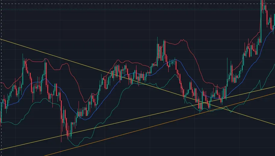 저항선을 뚫고 올라갈줄 알았지만 저항선 리테스트 + 아래 지지선까지 확인하고 후에 올라간 모습.
