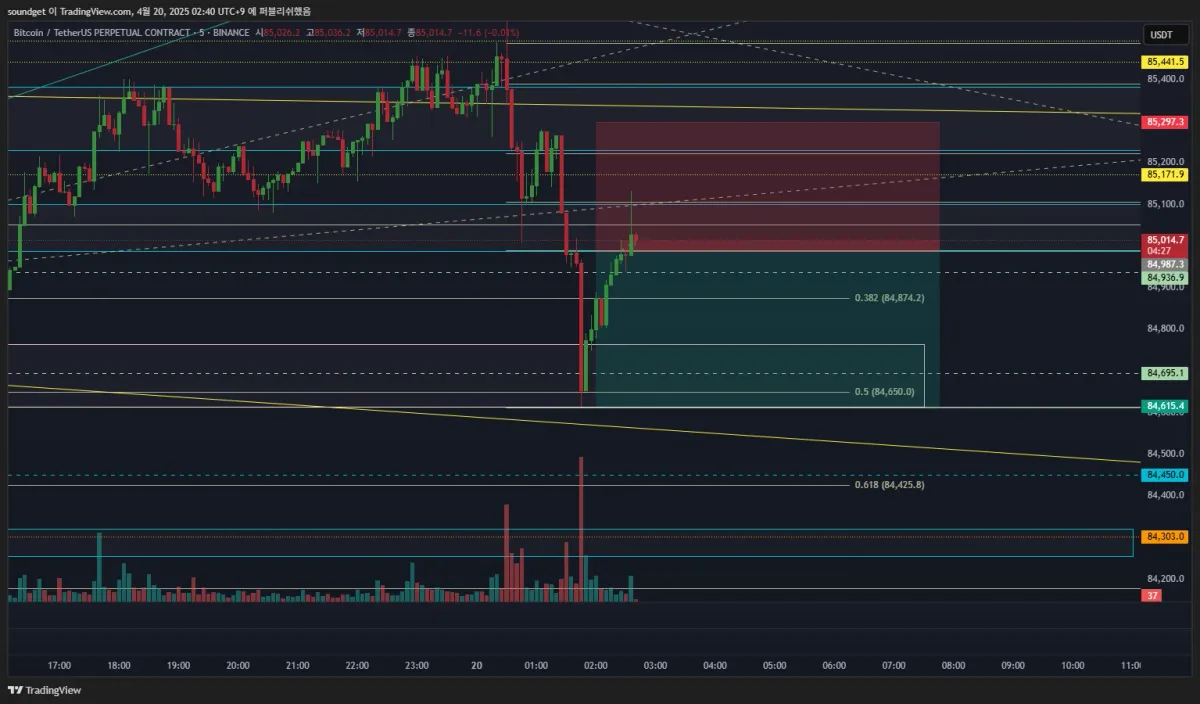 진입:84987.3/스탑:85297.3/익절:84615.4/손익비 1:1.2