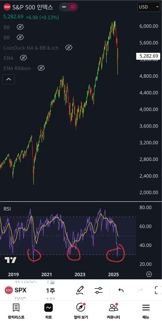 SPX 주봉상 RSI 과매도권 - 7일 챌린지 커뮤니티