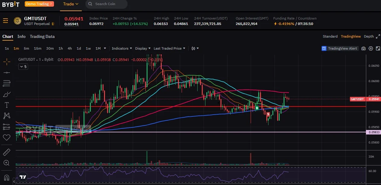 초록 이평선 돌파를 할 때 롱으로 매수타점을 잡고 손절은 파란 이평선, 수익은 빨간 이평선에 팔려고 했는데 파는 방법을 잘 몰라서 못팔고 설정 미숙으로 손절되었습니다.