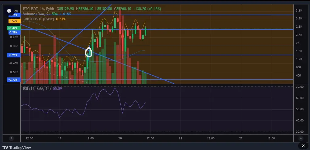 4.19일 12시경에 갑자기 추세선 상방돌파 확인 롱 바로 진입. 스탑로스 82000걸어놓고 포지션 들고있습니다. 아직까진 수익권!