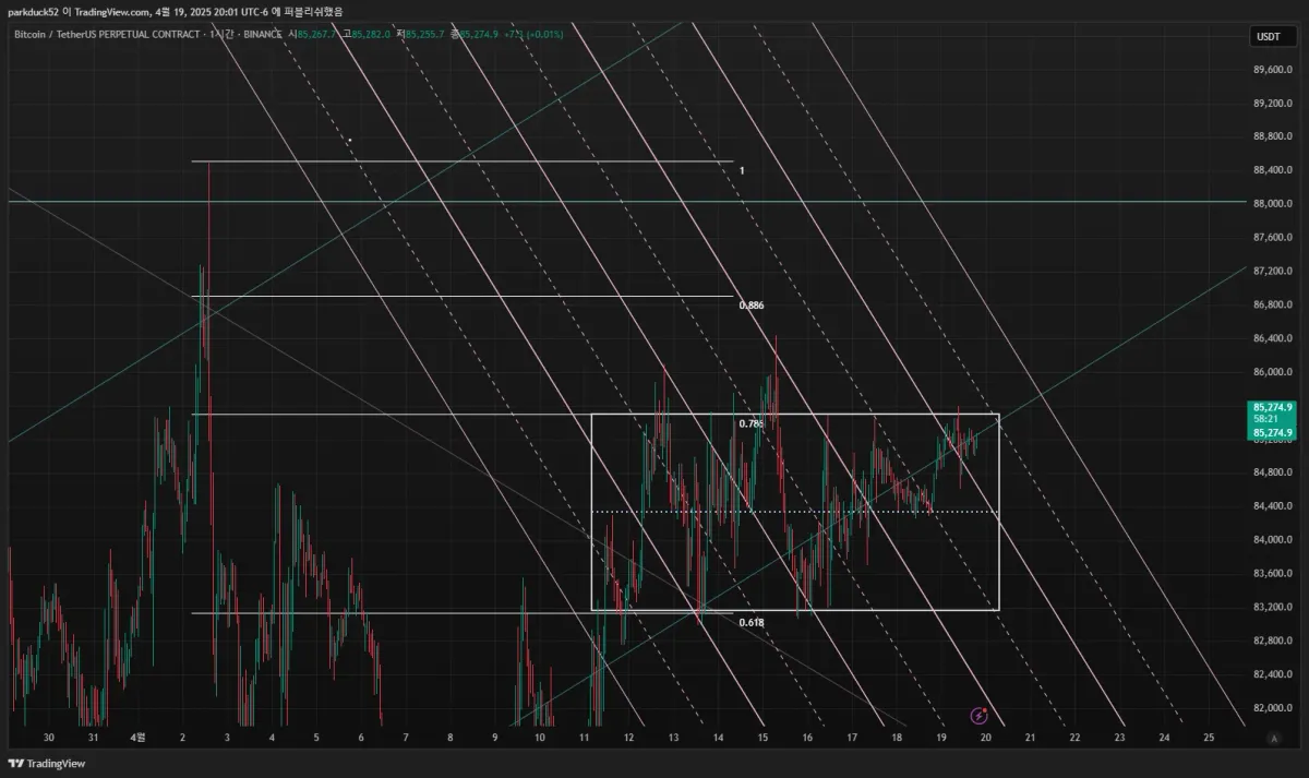 618이랑 786 구간 박스권 횡보로 보고, 박스권 중간에서 18일에 진입해서 19일에 상단터치할 때 익절하고 다음 포지션 대기중입니다.