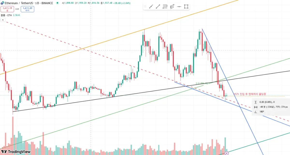 이더는 현재 2~3년전 가격대를 형성하고 있고, 현재 지지가 불가능할 시 그 깊이가 가늠이 되지 않기 때문에 마켓메이커들이 내리지 않을 확률이 높다고 생각했습니다.