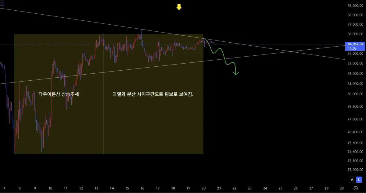 3. 따라서 현재로서는 상승 이후 횡보 이후 하락으로 진행되는게 자연스럽지 않나 생각합니다.