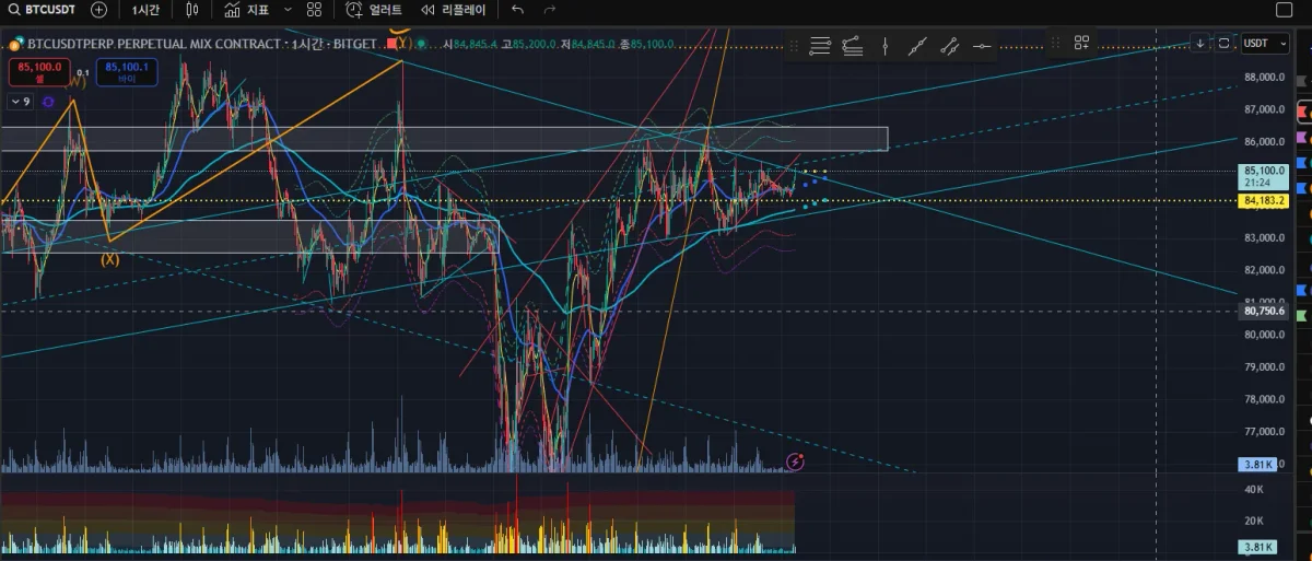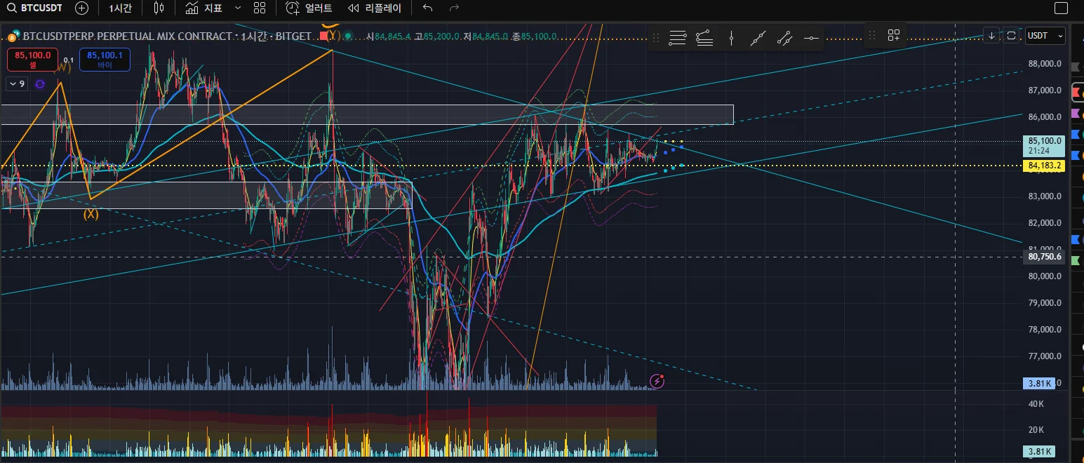 하락추세선 저항을 받고 단기조정을 받을거라생각했는데 이탈하면서 손절이 나갔습니다
