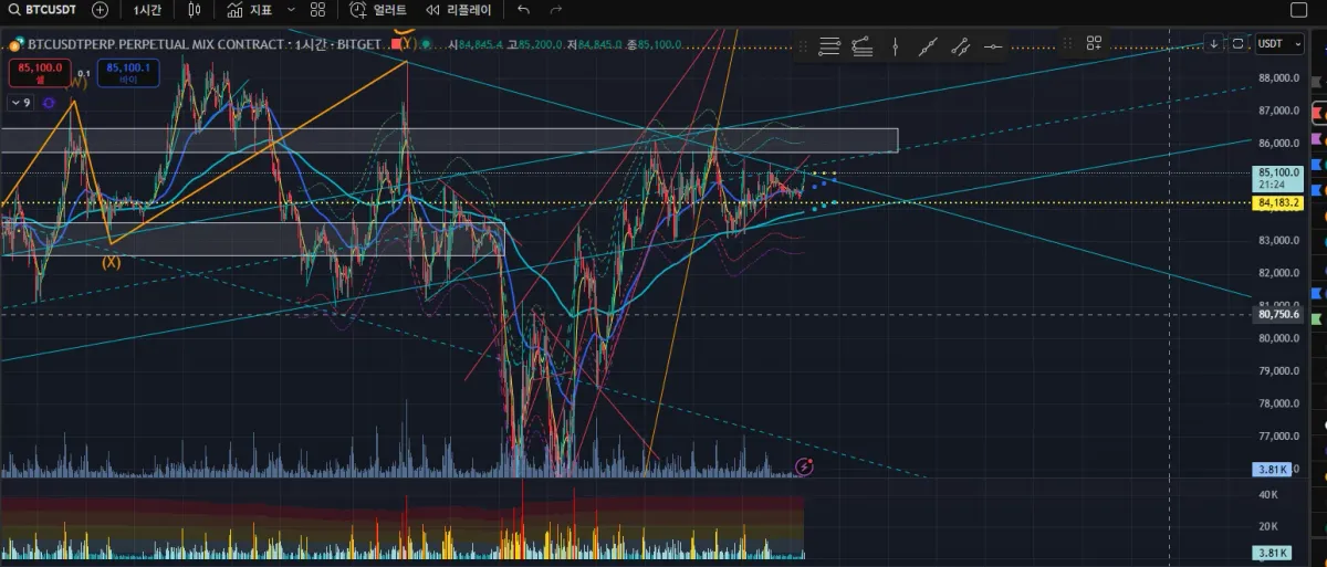하락추세선 저항을 받고 단기조정을 받을거라생각했는데 이탈하면서 손절이 나갔습니다