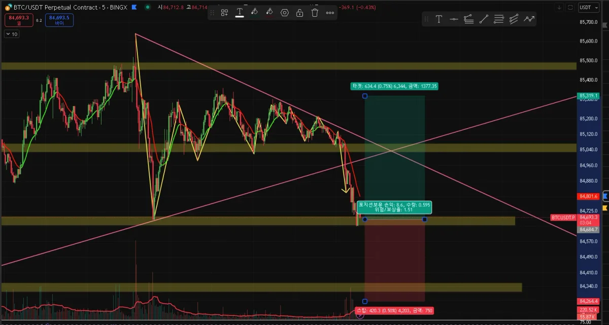 하락 추세인걸 생각을 했음에도 ob에 지지를 당연히 받을 거라 착각함