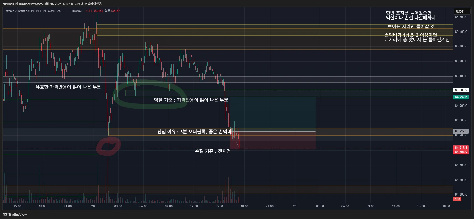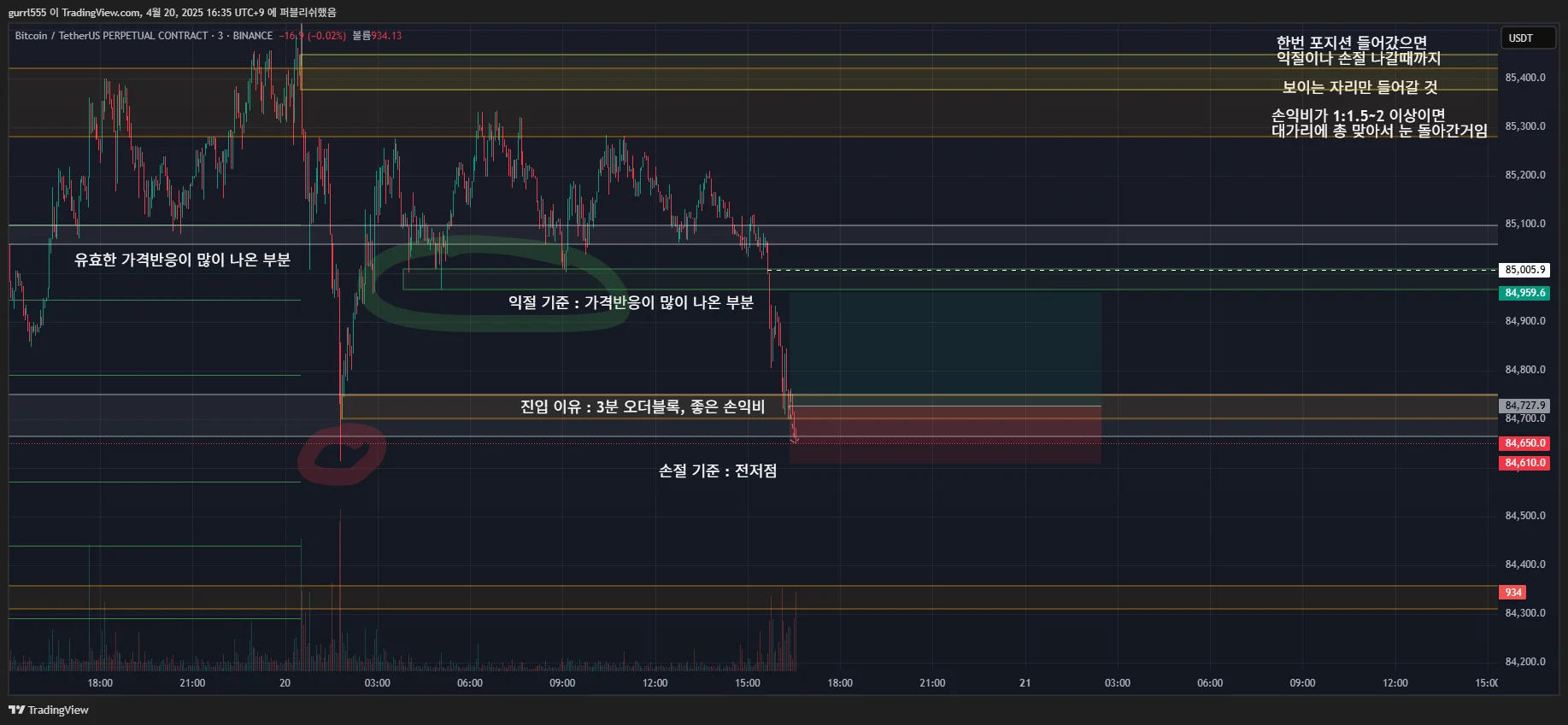 숏을 이미 잡고 있는 중, 손익비가 너무 좋은 자리가 보여서 살짝 헷지 롱을 들어가보았습니다.