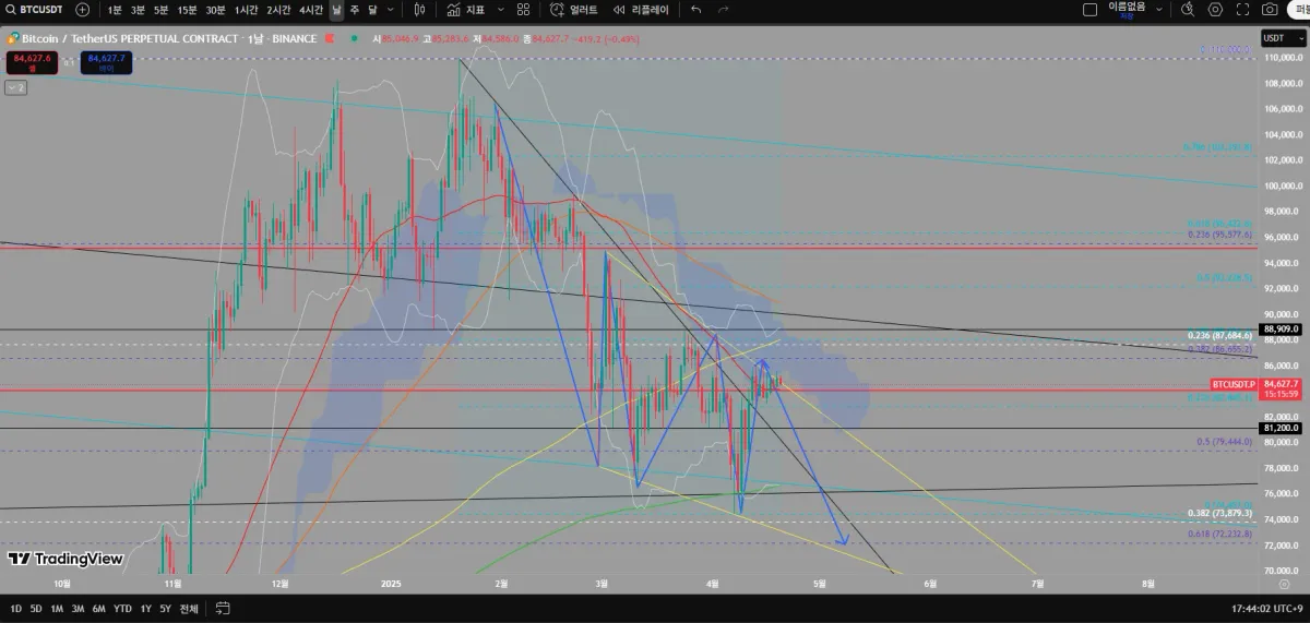-. 숏 진입 구간을 잡아야 하는데 현재 84,500 정도의 구간에서 횡보중.