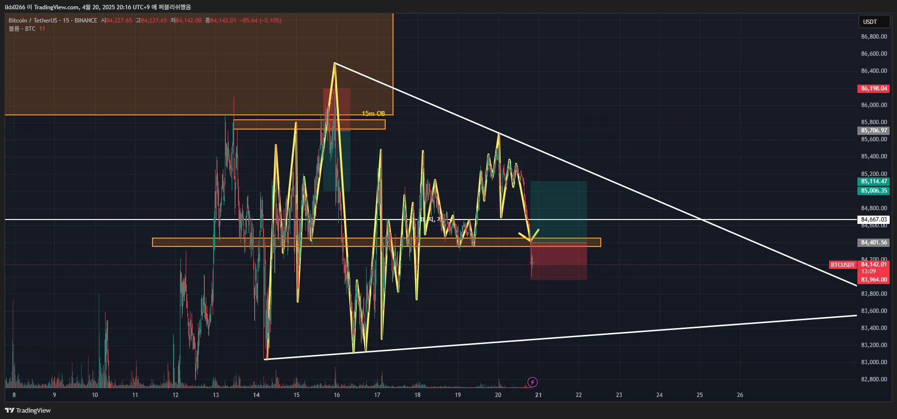 -고점이 낮아지고 저점이 높아지고 있기에 고점 부근에서 익절할 계획