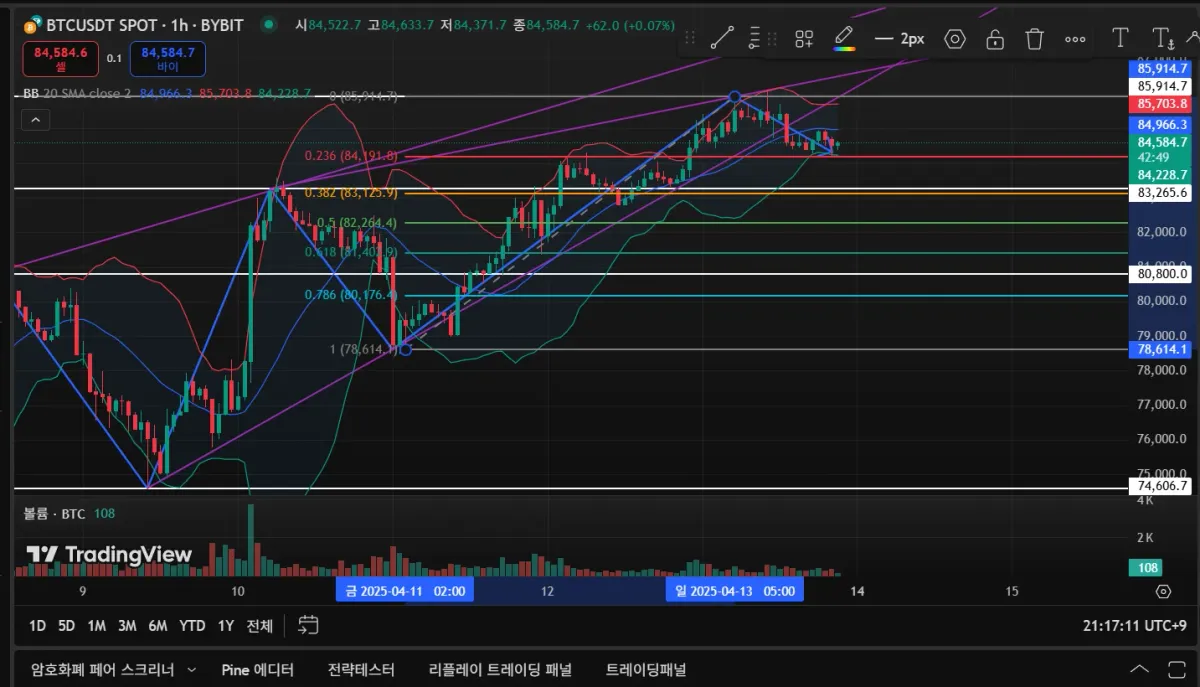 - 트레이딩뷰 결과로 추세선 이탈로 하방을 예측을 했었습니다.
